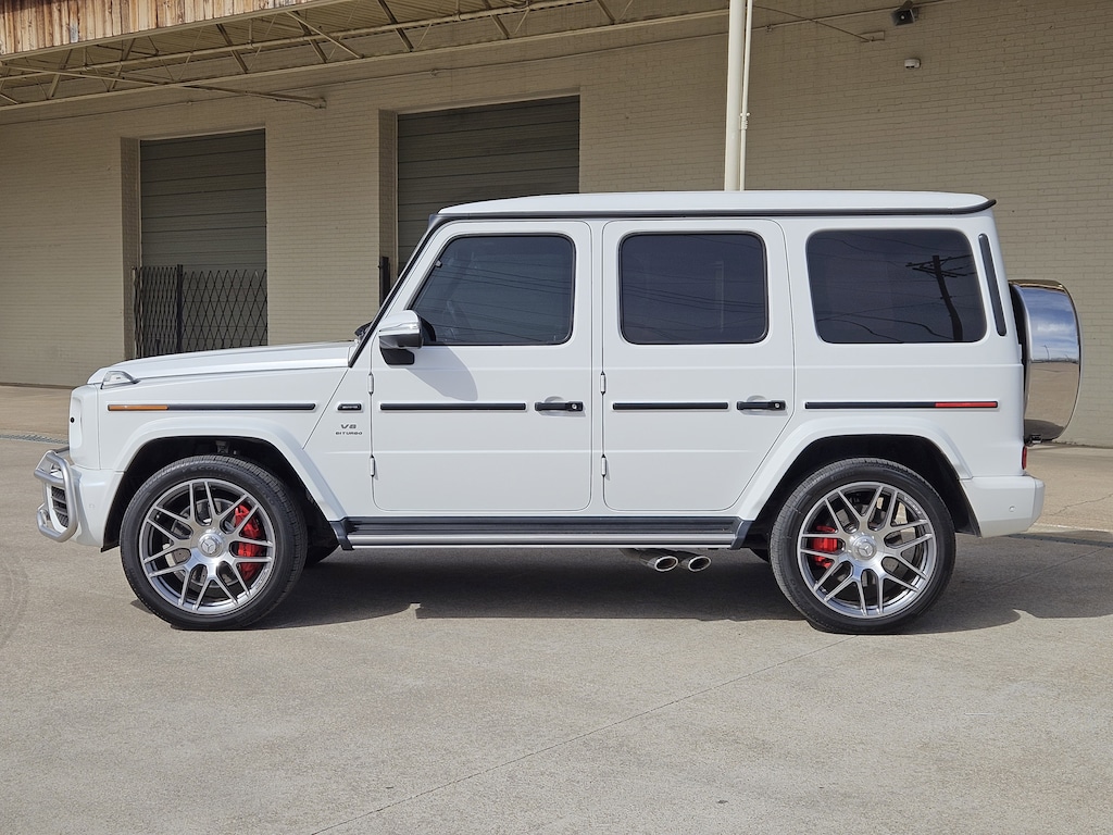 Crafted with meticulous attention to detail, the exterior of this G-Class showcases the iconic boxy silhouette and bold, distinctive styling that have made it a legend in the luxury SUV segment. The striking white paint and gleaming 20 AMG® 10-spoke alloy wheels further accentuate the vehicle's commanding presence.