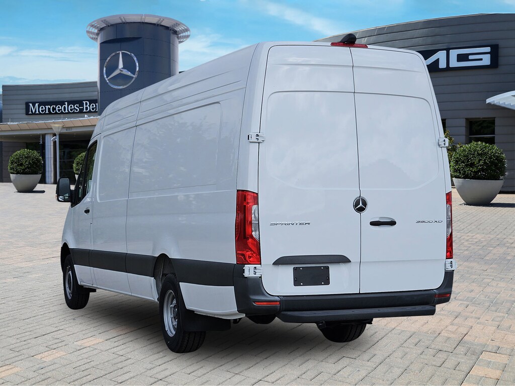 Our Diesel powered 2025 Mercedes-Benz Sprinter 3500 High Roof Cargo Van is built for bigger challenges in White! Motivated by a TurboCharged 2.0 Liter High Output Diesel 4 Cylinder serving up 211hp and 332lb-ft of torque to a 9 Speed Automatic transmission to help tow, haul, and take care of business. This Rear Wheel Drive van also has responsive handling to rule the road, and it delivers impressive details to stand out on the job or off. Benefits like a bold Mercedes-Benz grille star, a raised roof, swing-out rear cargo doors, a sliding passenger-side door, daytime running lamps, and heated power mirrors are the highlights.