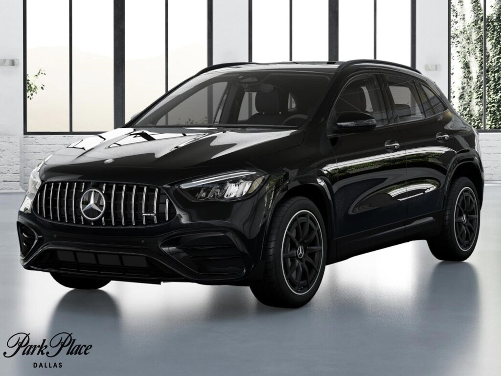 Our 2026 Mercedes-Benz AMG® GLA 35 in Cosmos Black Metallic is here to upgrade your adventures. Motivated by a TurboCharged 2.0 Liter 4 Cylinder and 48V Mild-Hybrid system generating 302hp to an 8 Speed DCT Automatic transmission. This Front Wheel Drive SUV also delivers strong performance on the pavement or off, returning nearly 34mpg on the highway with a streamlined design to send you to 60mph in 5 seconds. Our GLA greets you with bold AMG® bodystyling, gloss-black accents, 19-inch AMG® twin-spoke alloy wheels, sport brakes, illuminated star-pattern trim, a Panorama sunroof, active LED headlights, and a power liftgate.